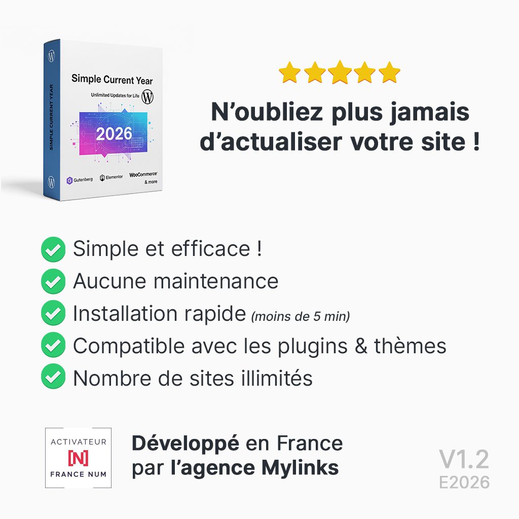 Enfin une extension Wordpress simple et performante qui affiche automatiquement l’année en cours !